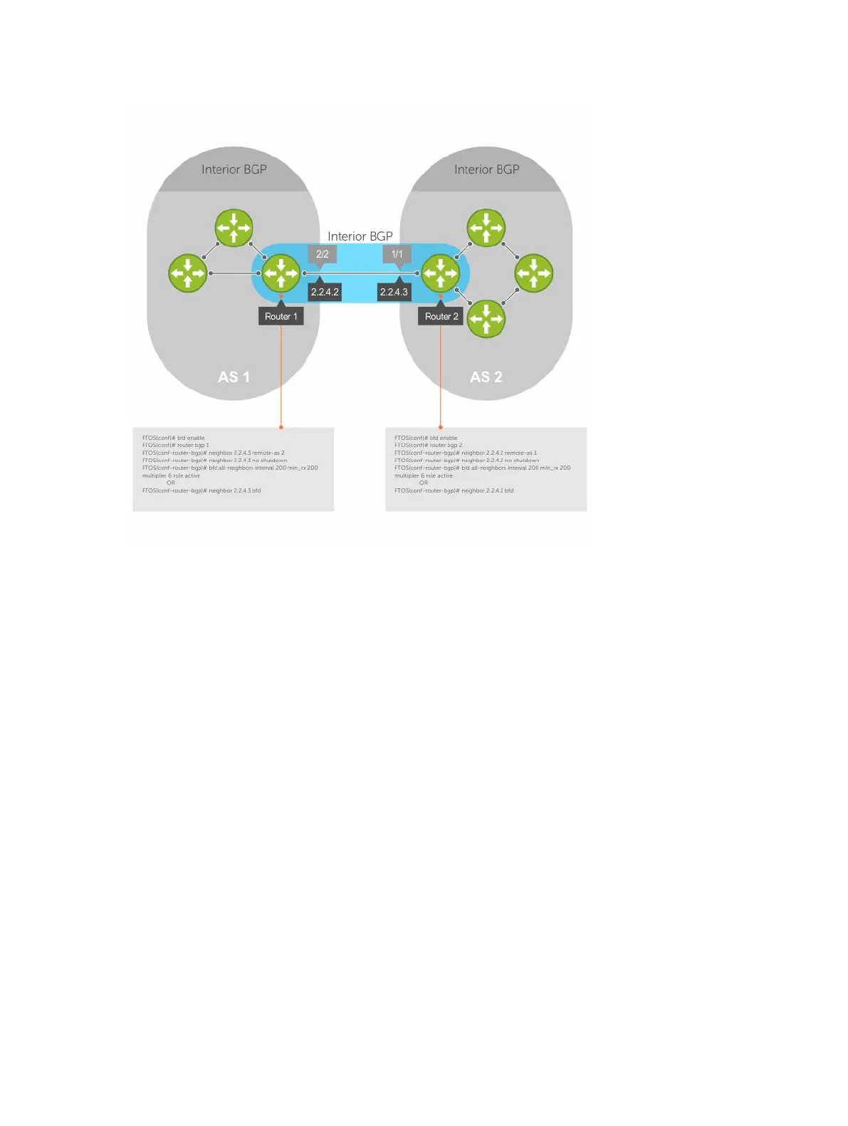 • By establishing BFD sessions with all neighbors discovered by BGP (the bfd all-neighbors