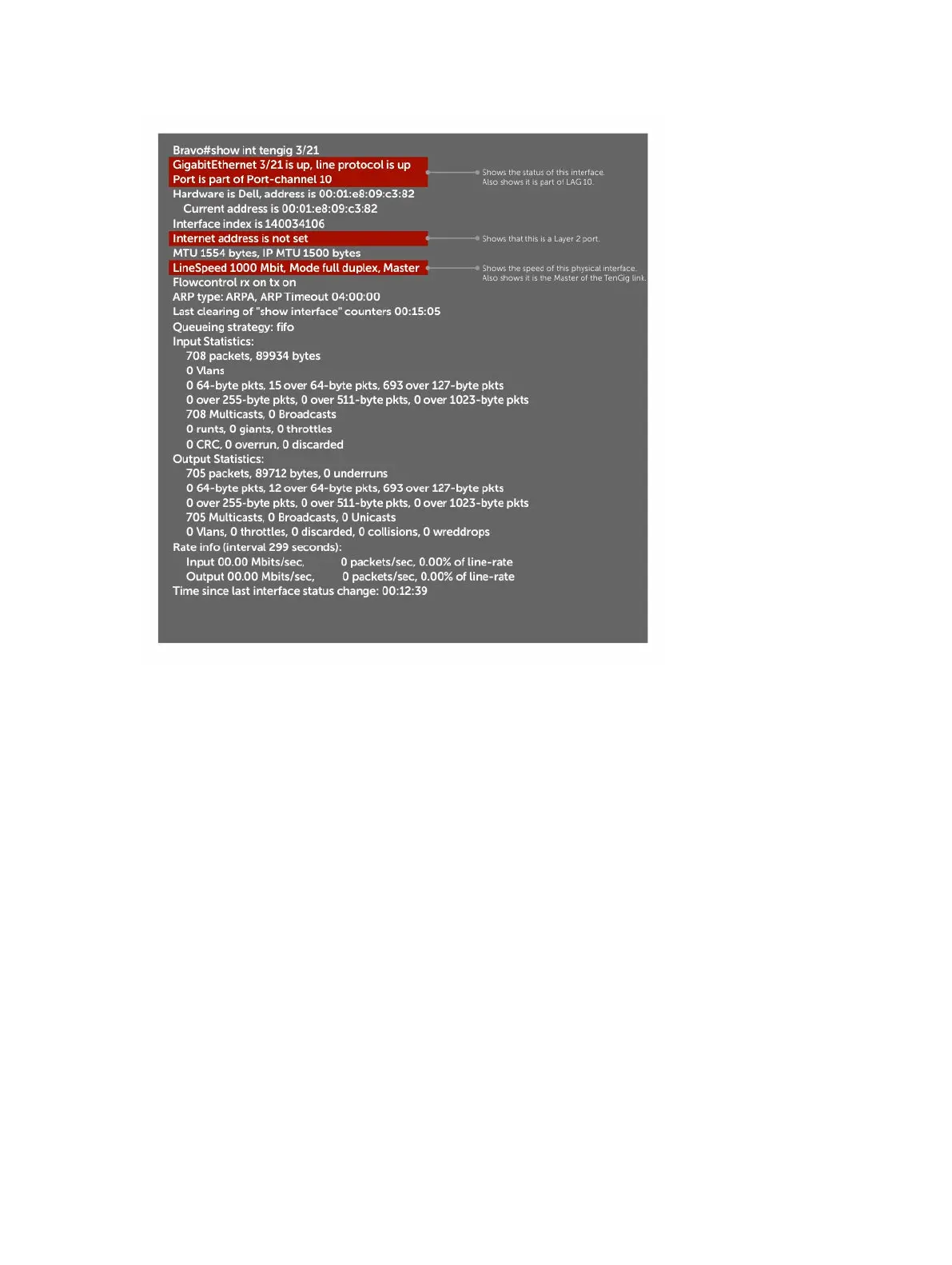 Figure 64. Inspecting a LAG Port on BRAVO Using the show interface Command