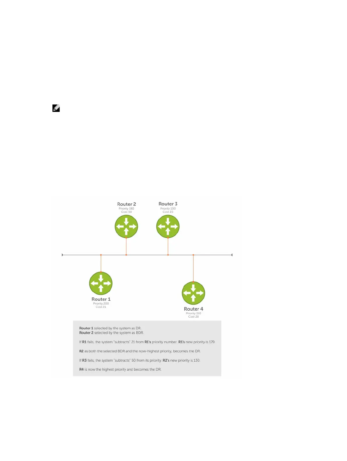For example, if not assigned, the system selects the router with the highest priority as the DR. The second