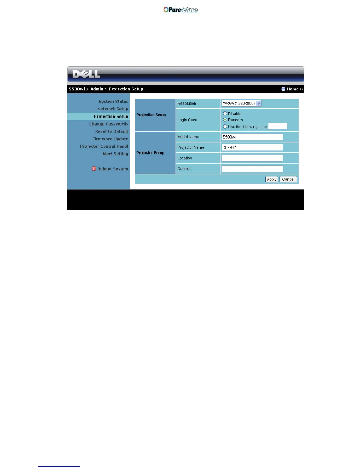 Click the Apply button to save and apply changes. The projector must be restarted