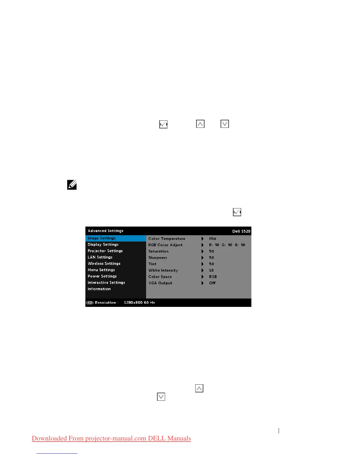 IMAGE SETTINGS (IN VIDEO MODE)—Select and press to activate image