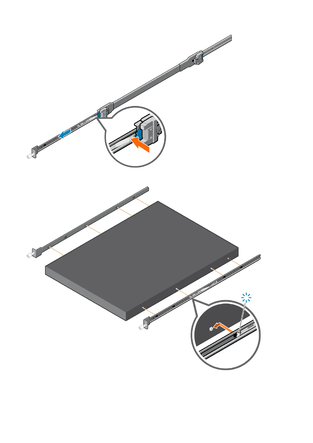 For EIA 9.5 mm (.354 in) square hole racks (default setting for the outer rail):