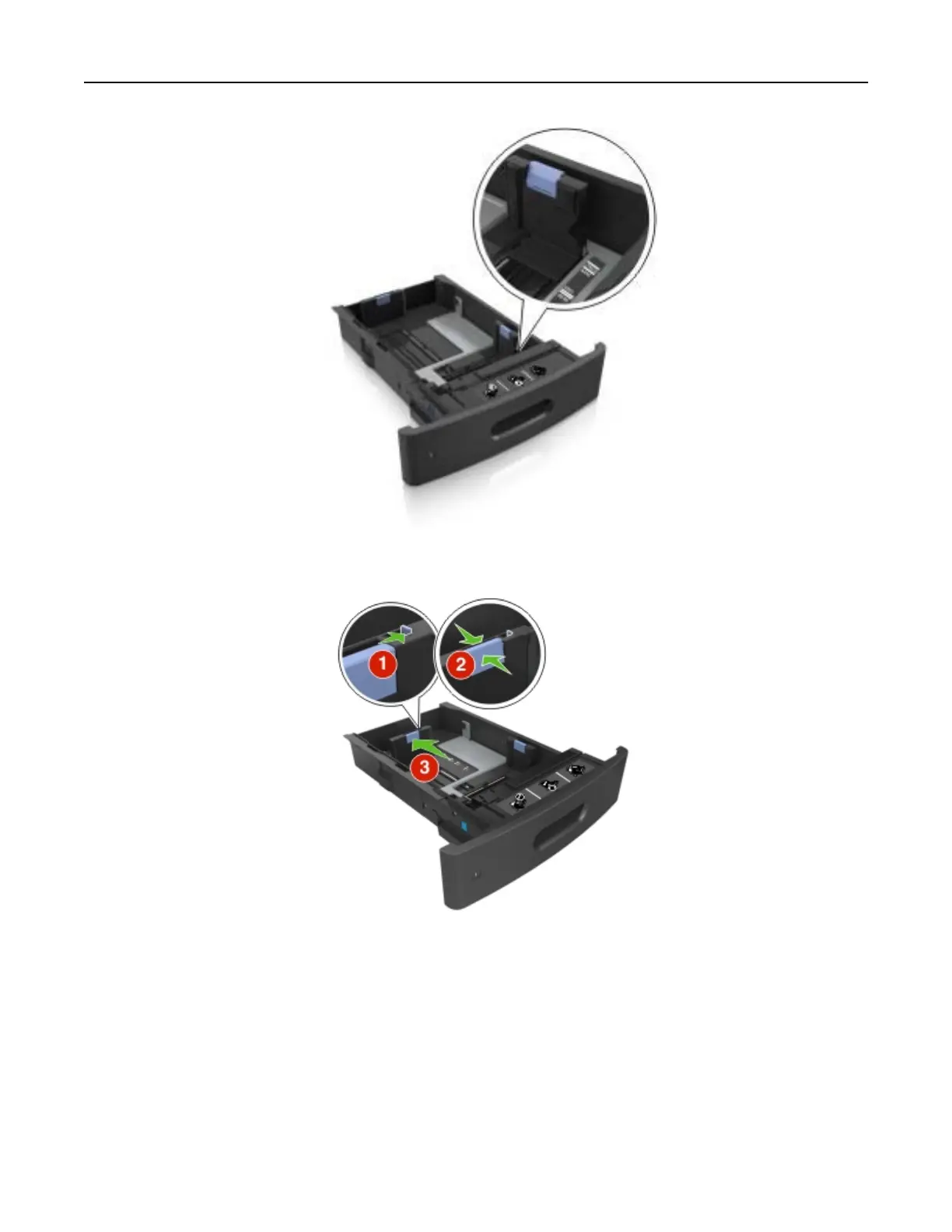 Use the paper size indicators at the bottom of the tray to help position the guides.