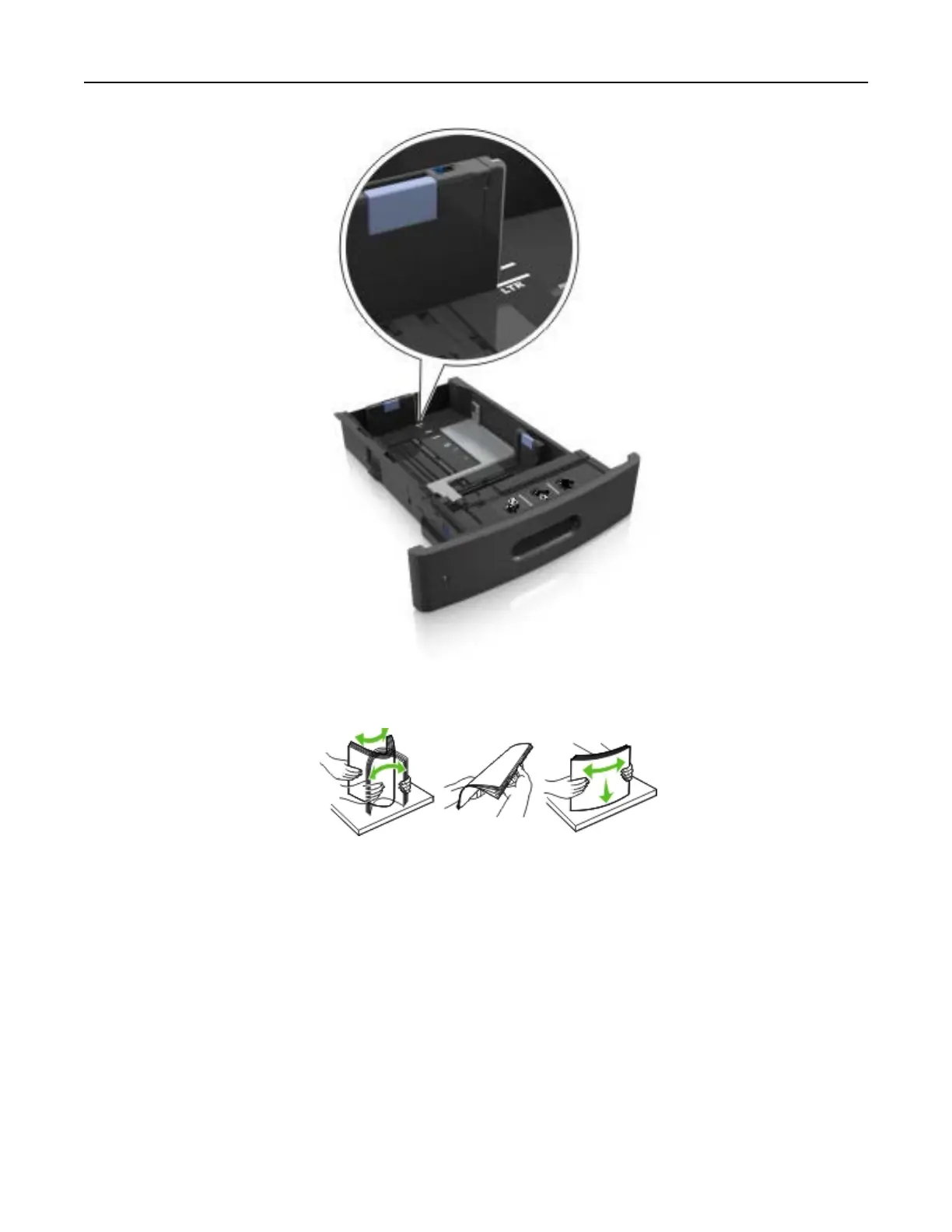 4 Flex the sheets back and forth to loosen them, and then fan them. Do not fold or crease the paper. Straighten