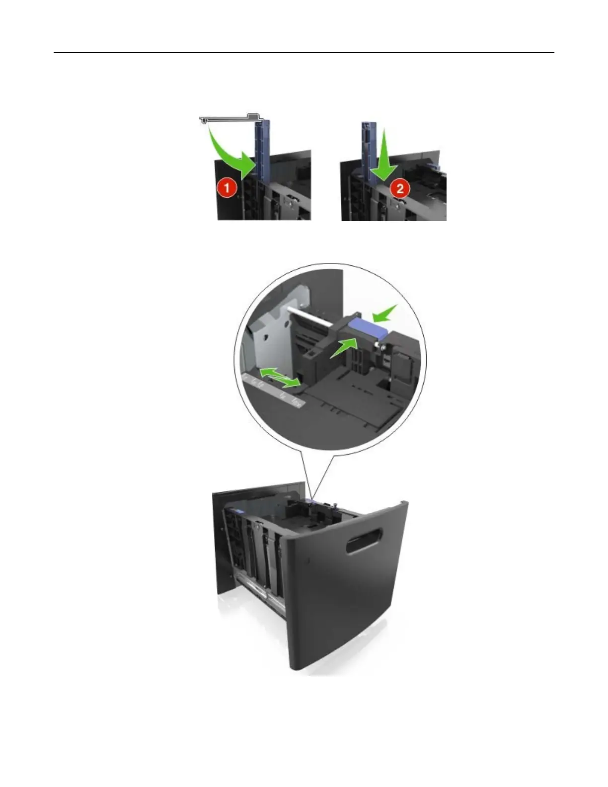 d Squeeze the length guide and slide it to the correct position for the size of the paper being loaded until