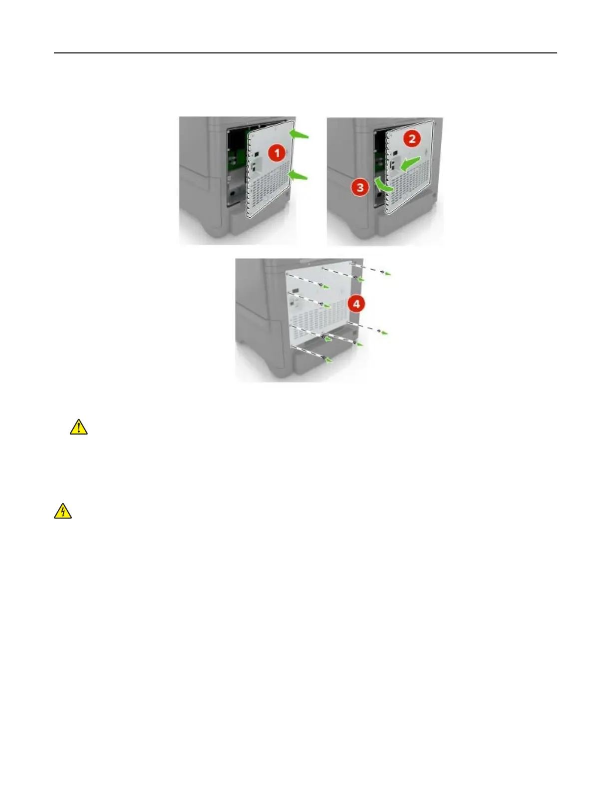 board or installing optional hardware or memory devices sometime after setting up the printer, then turn