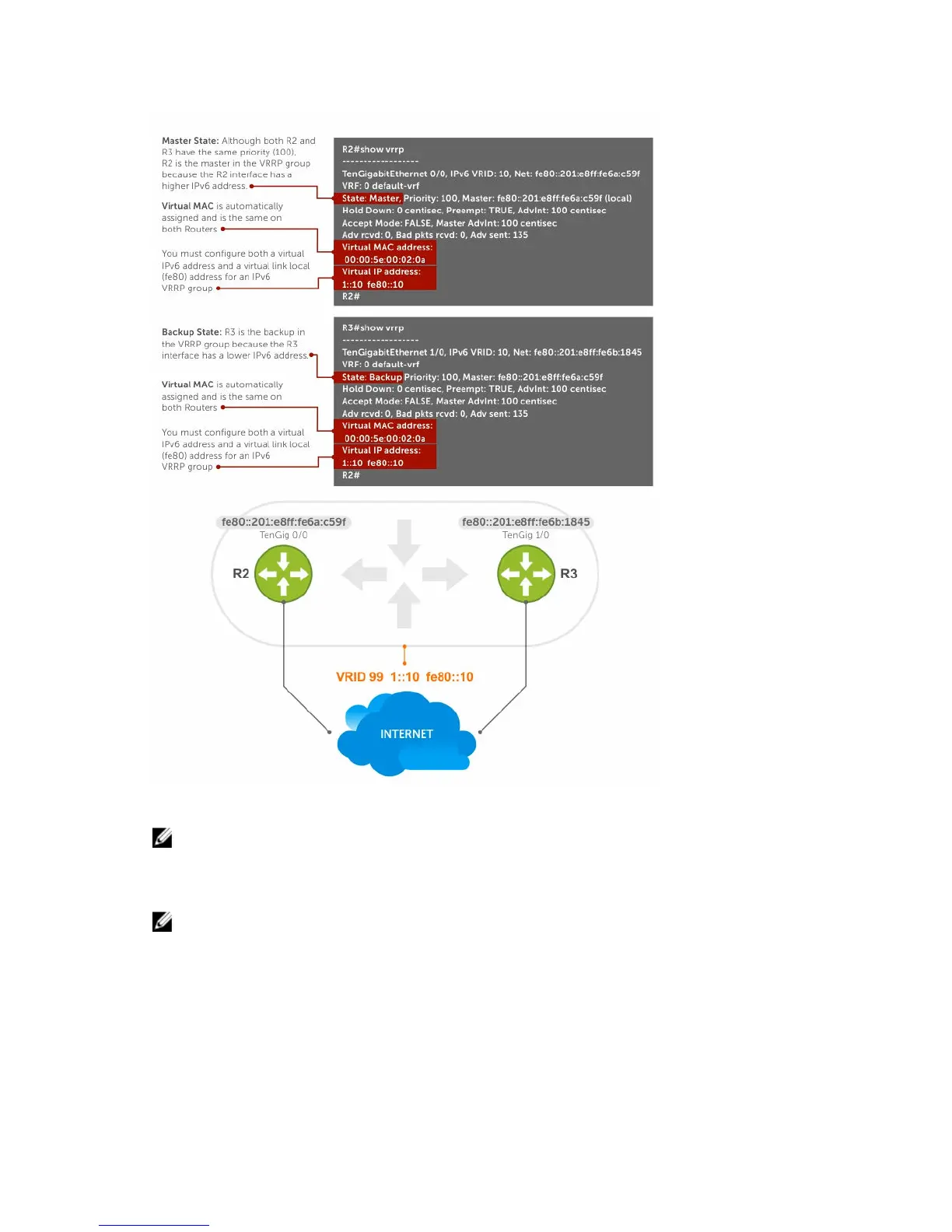 NOTE: In a VRRP or VRRPv3 group, if two routers come up with the same priority and another