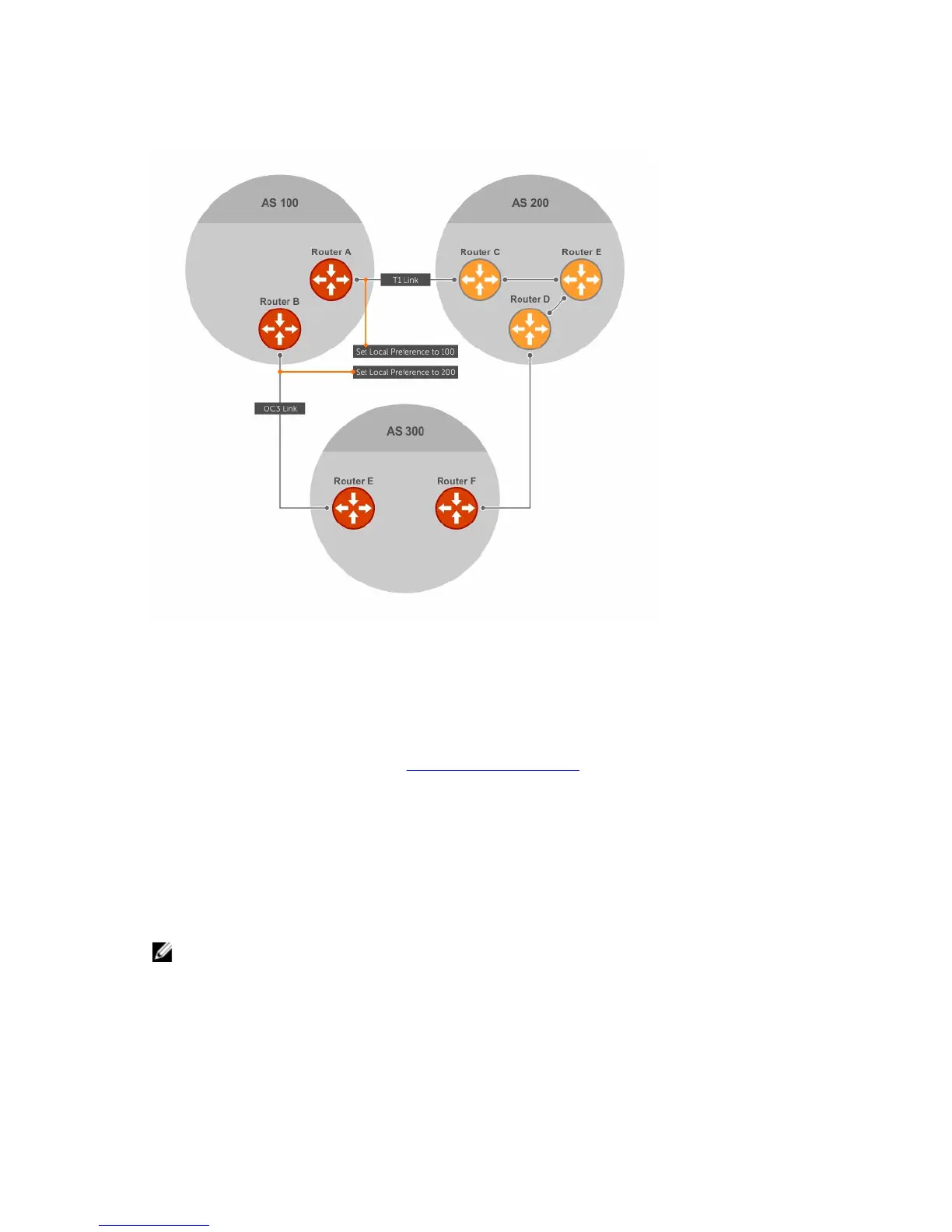 and AS300. This is advertised to all routers within AS100, causing all BGP speakers to prefer the path