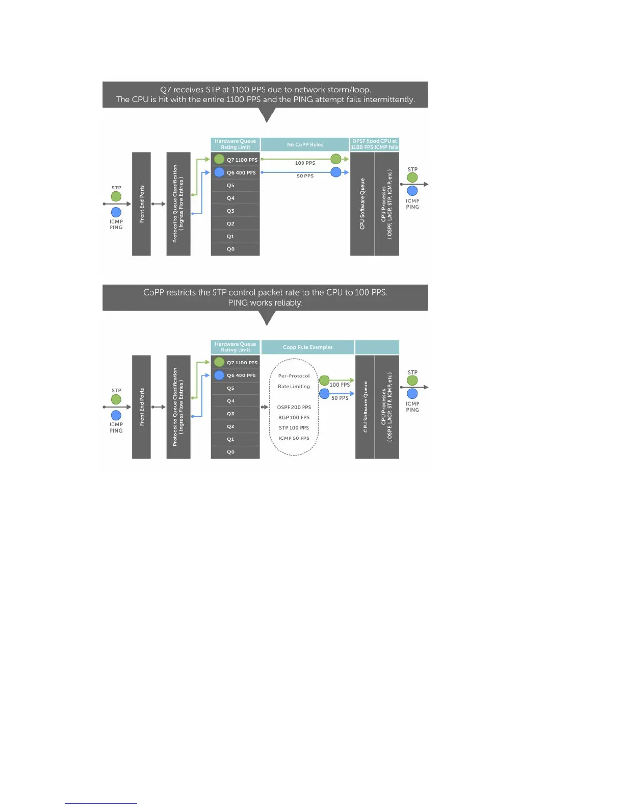 protocol CoPP is applied. This happens because queue-based rate limiting is applied first.