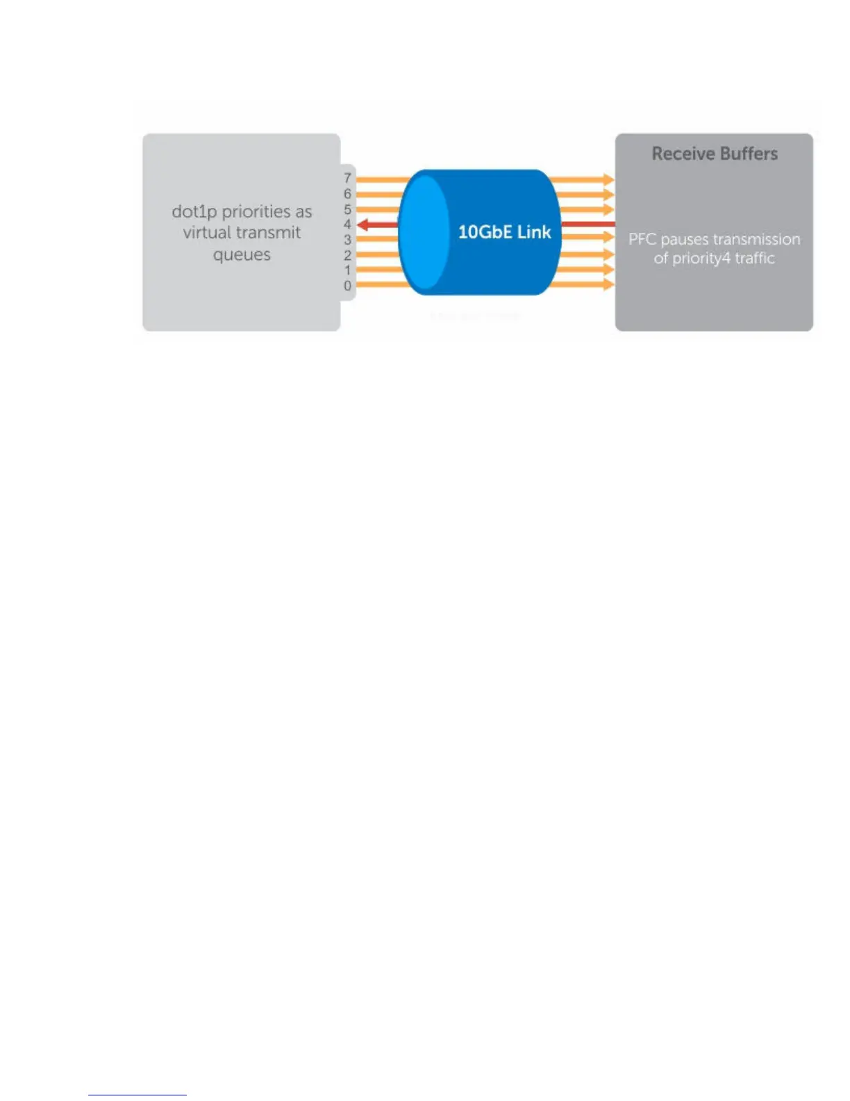 • PFC is supported on specified 802.1p priority traffic (dot1p 0 to 7) and is configured per interface.