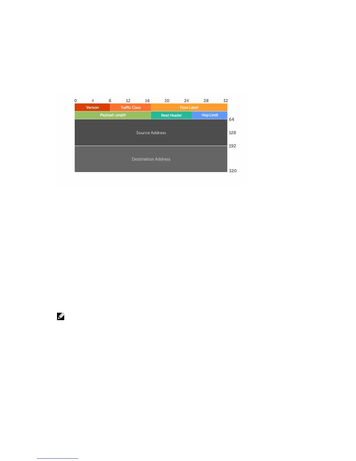 The 40 bytes of the IPv6 header are ordered, as shown in the following illustration.
