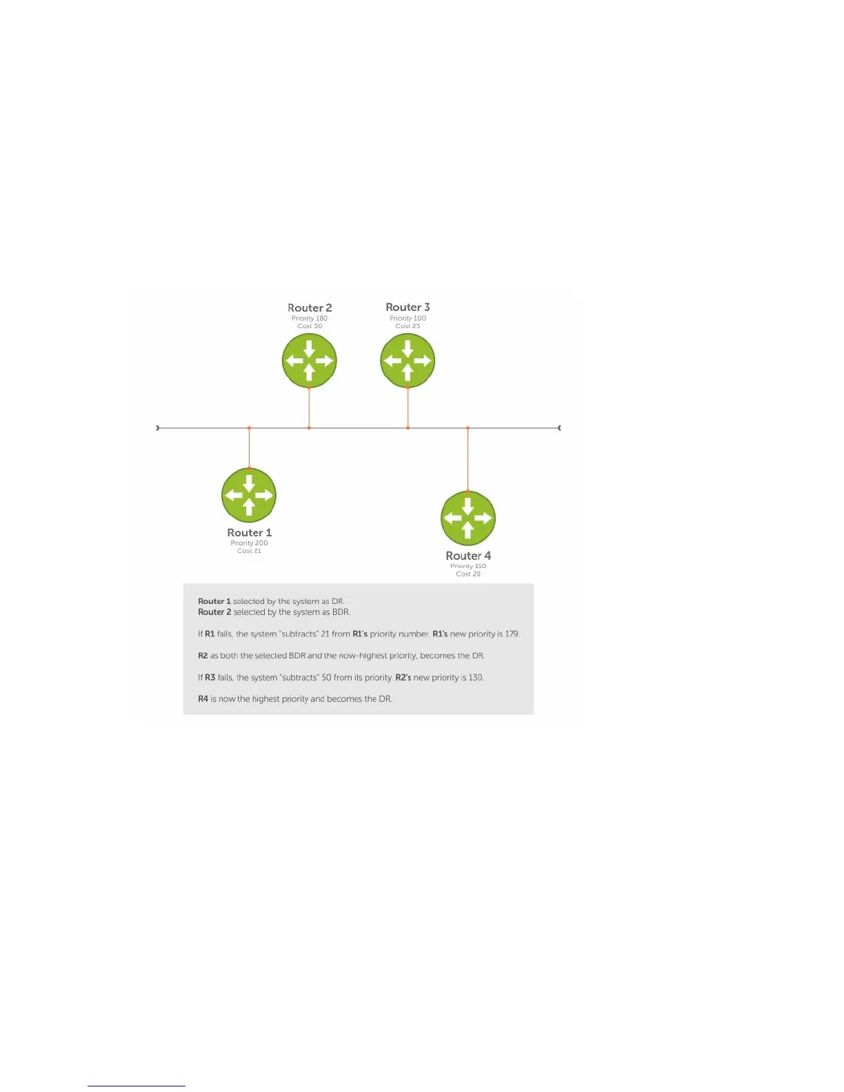 For example, if not assigned, the system selects the router with the highest priority as the DR. The second