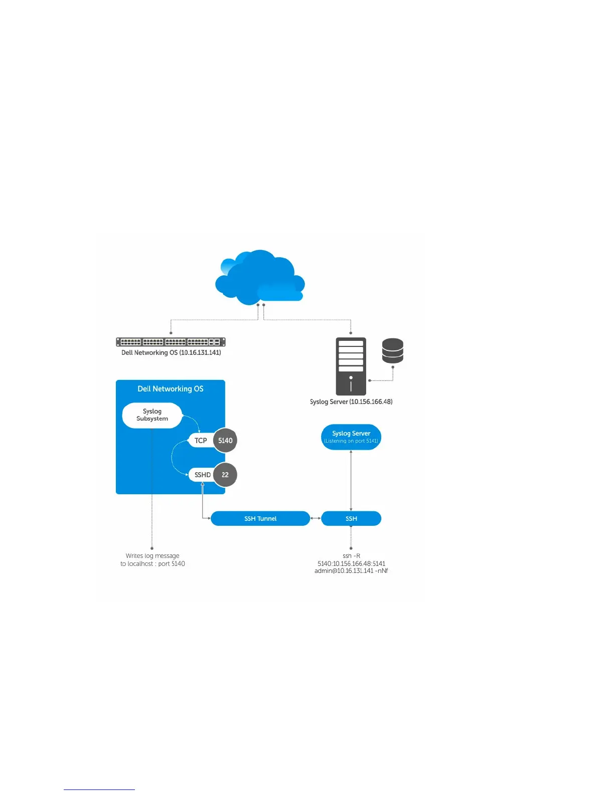 You can use reverse tunneling with the port forwarding to securely connect to a syslog server.