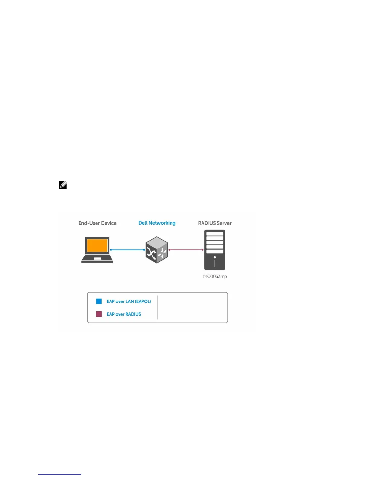 NOTE: The Dell Networking Operating System (OS) supports 802.1X with EAP-MD5, EAP-OTP, EAP-