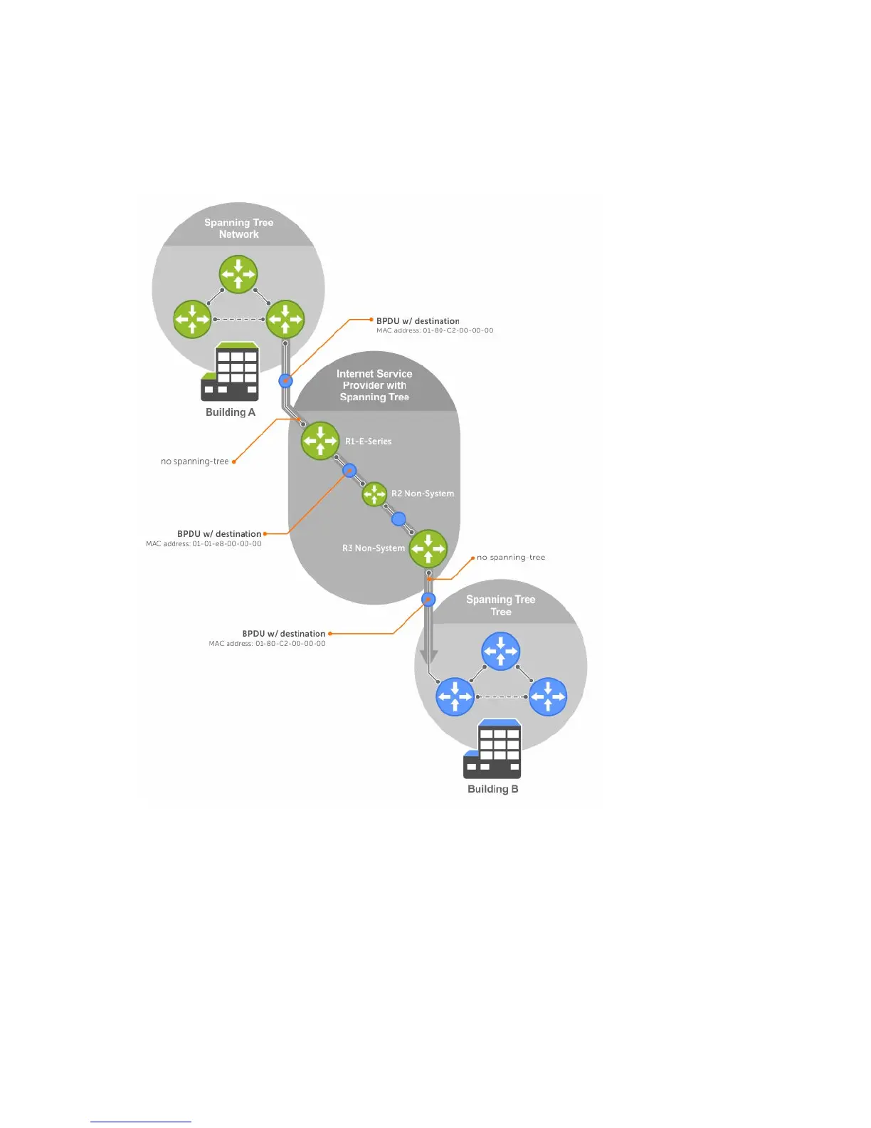 destination MAC address and rewrite it to the original Bridge Group Address. In Dell Networking OS