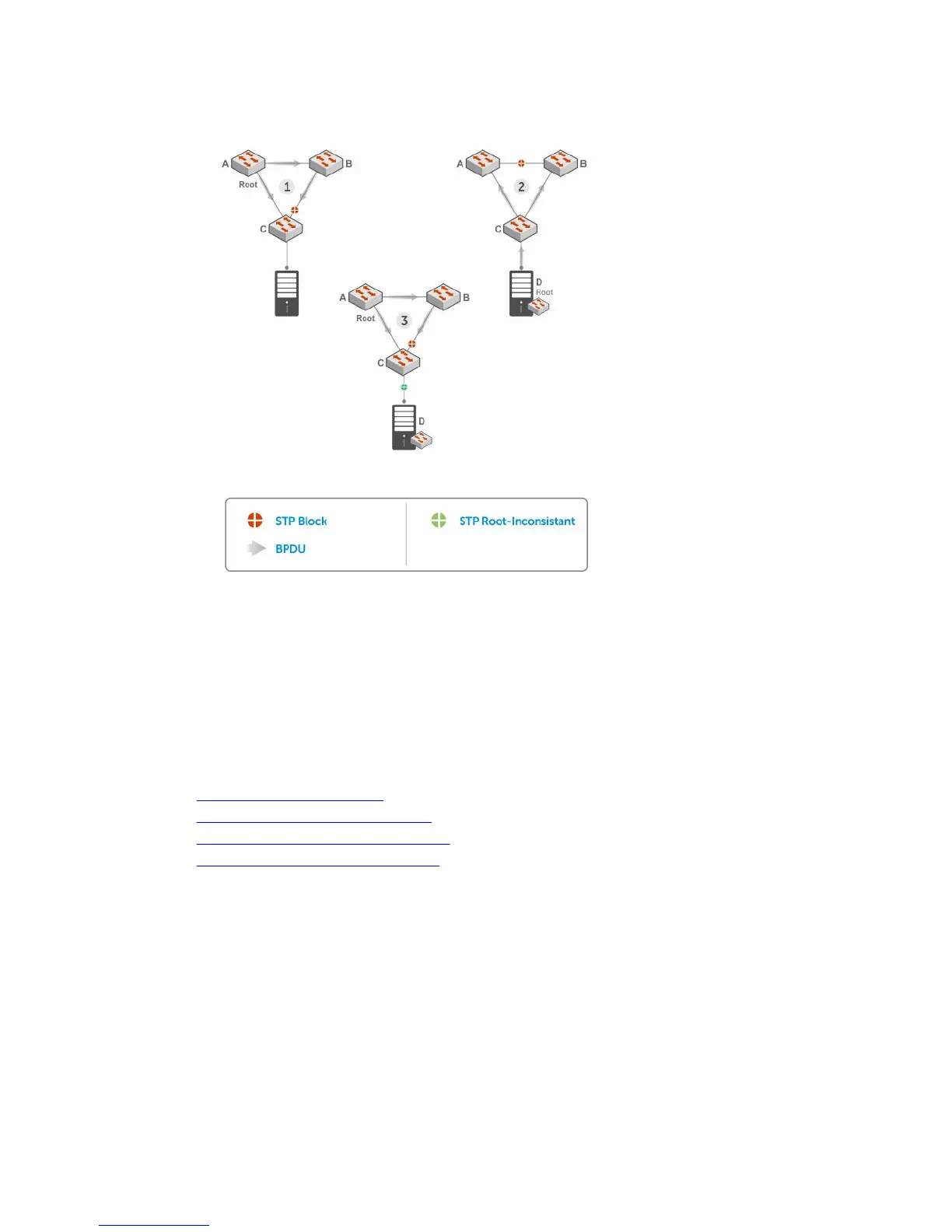 Dell Networking OS Behavior: The following conditions apply to a port enabled with STP root guard: