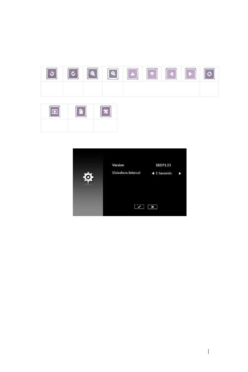 buttons on the screen to control photo playback.