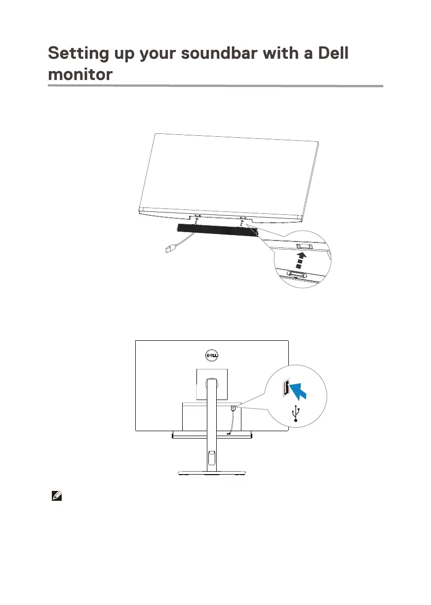 1. Align the magnetic tabs on the soundbar with the slots on the Dell monitor to secure