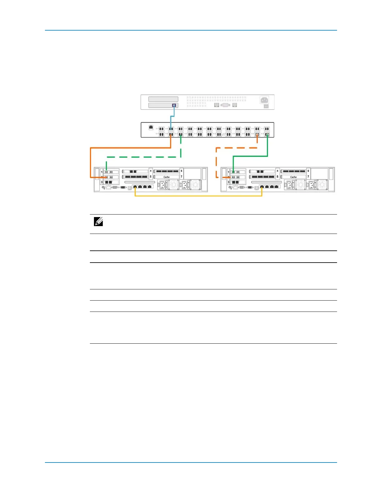 Thefollowingfigureshowsadual‐controllerStorageCenterinlegacymodeconnectedto
