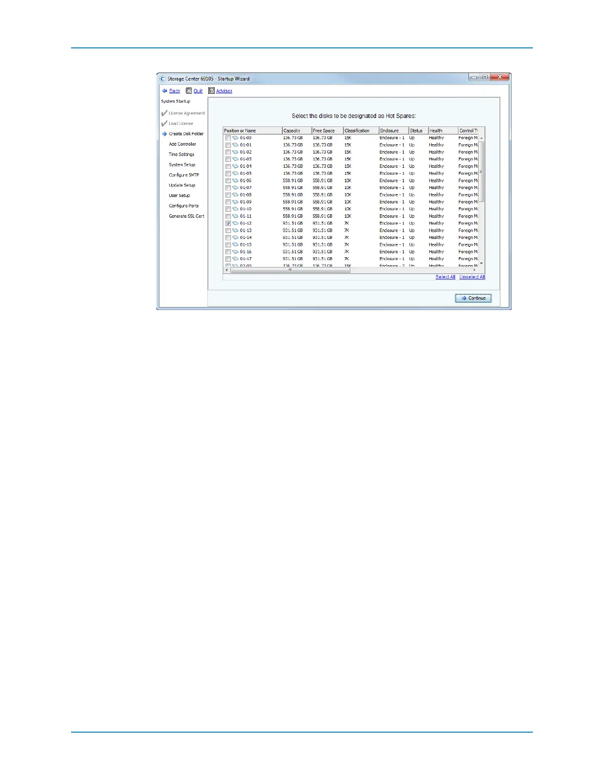 2 ReviewthehotsparedisksautomaticallyselectedbytheStartupWizard.
