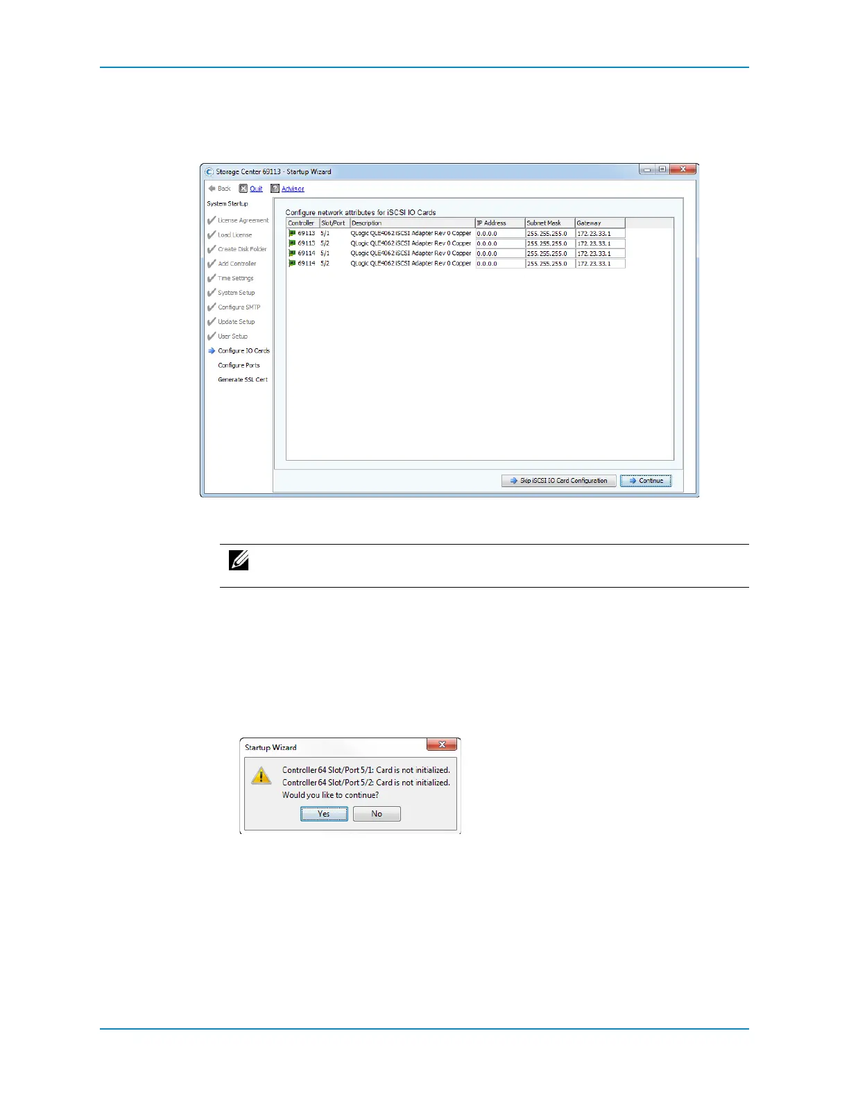 TheConfigureIOCards pageappearsiftheStorageCenterdetectsiSCSIIOcards.Usethis