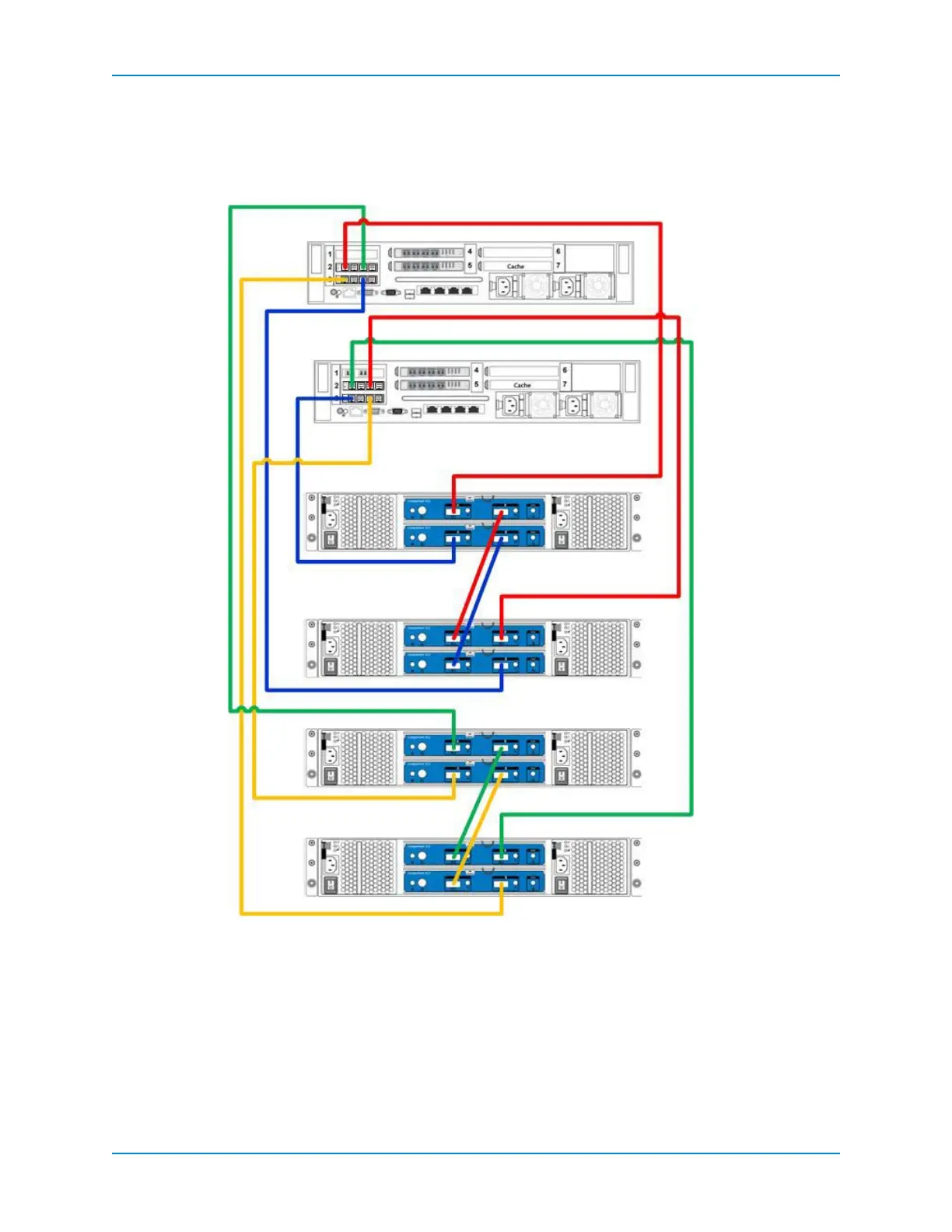 ThisillustrationshowstwoSC8000controllerscabledtotwo6Gbenclosures.Inthiscase,