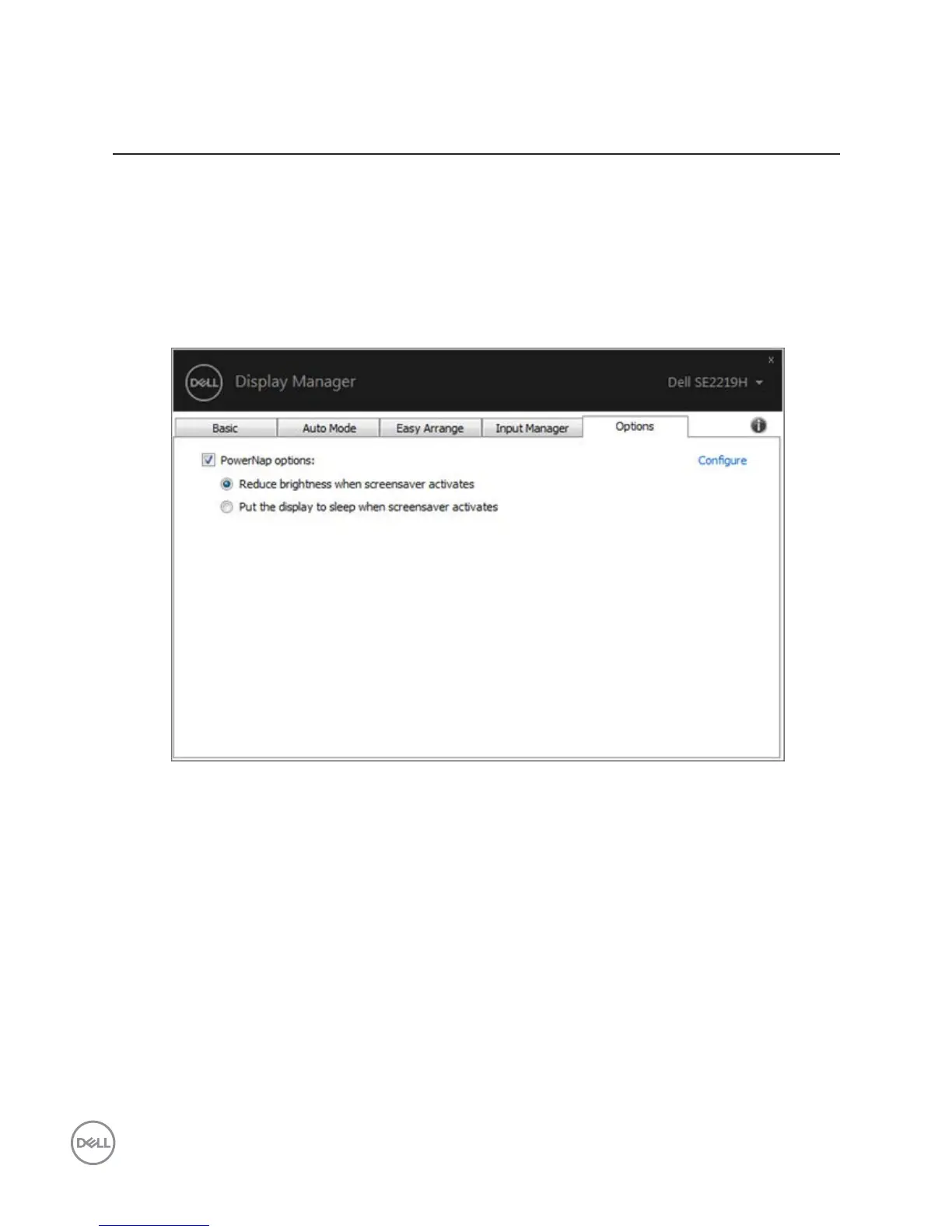 On supported Dell models, an Options tab is available that provides