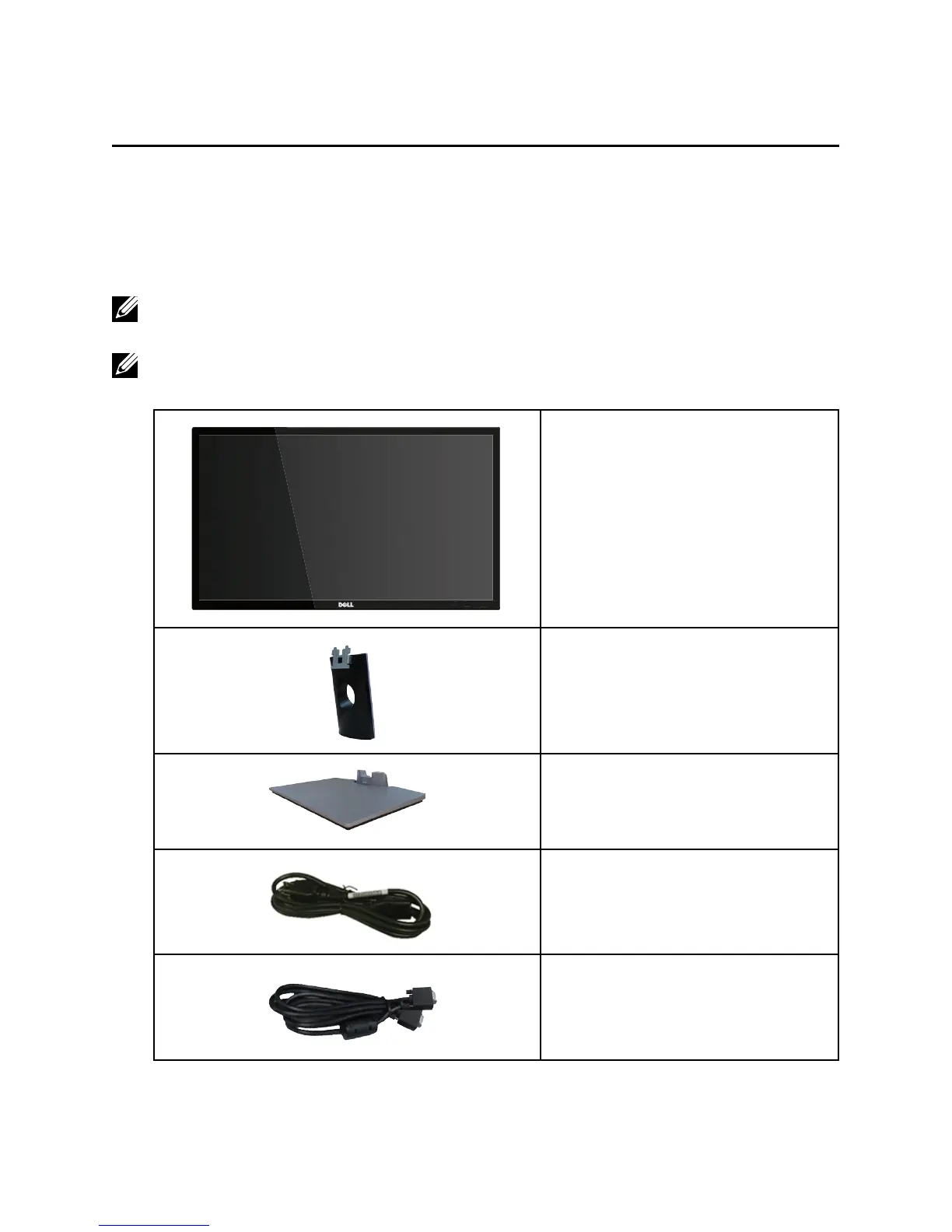 Your monitor ships with the components shown below. Ensure that you have