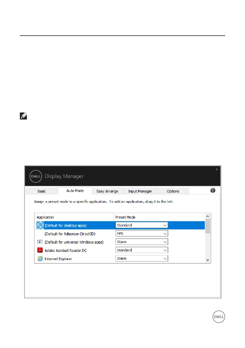 application, and apply it automatically. When Auto Mode is enabled, Dell Display