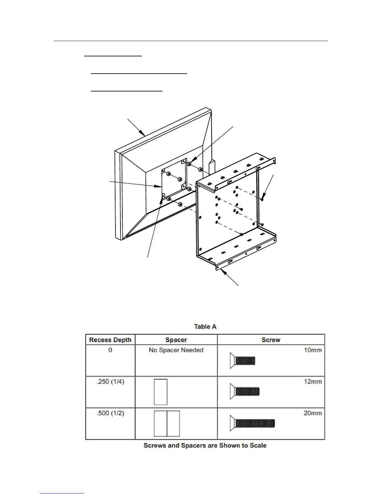 surface. Spacers are provided to fill this gap. See Table A for spacer length options.