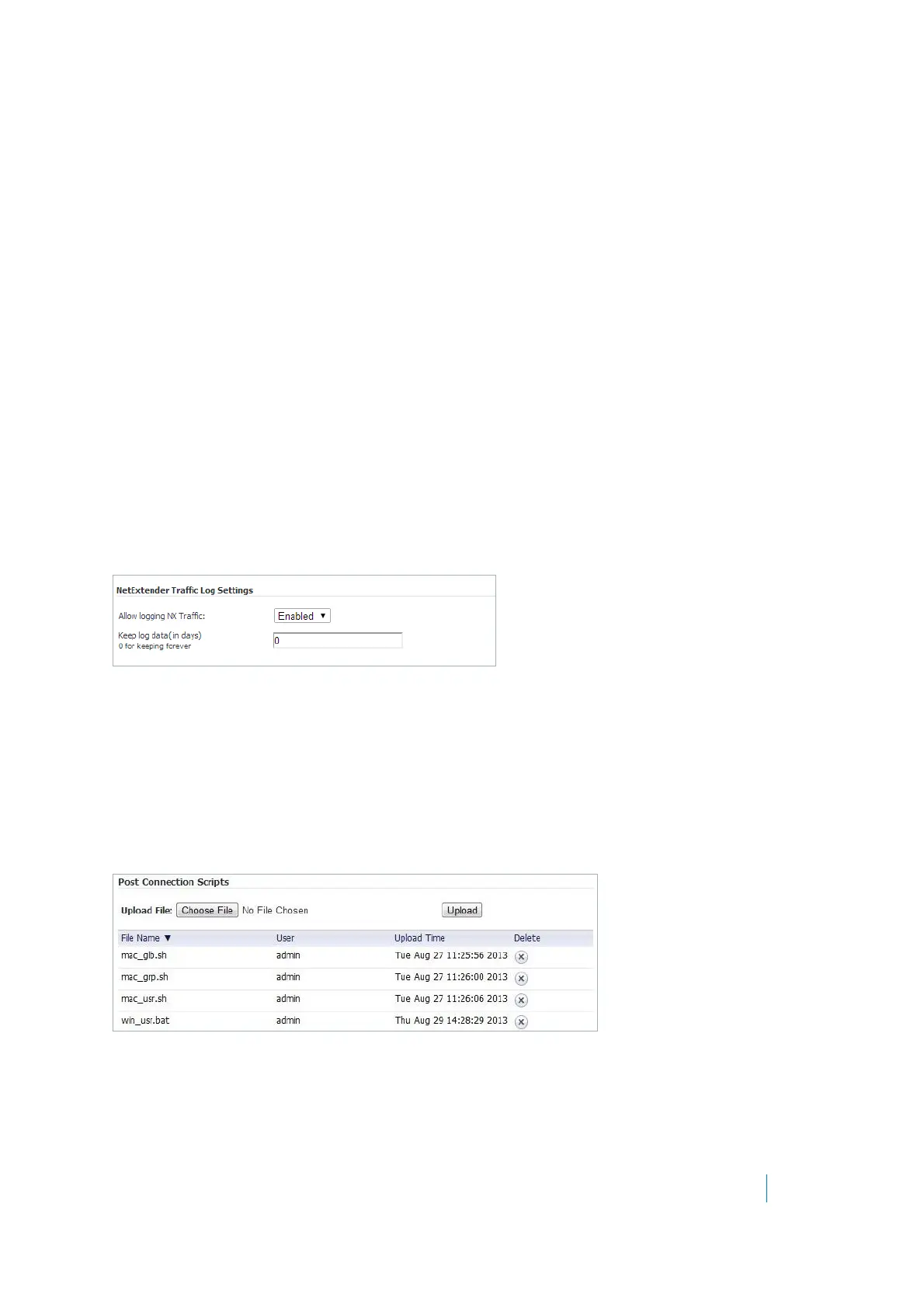 Administrators are now able to upload or delete post connection script files for NetExtender. Navigate to the