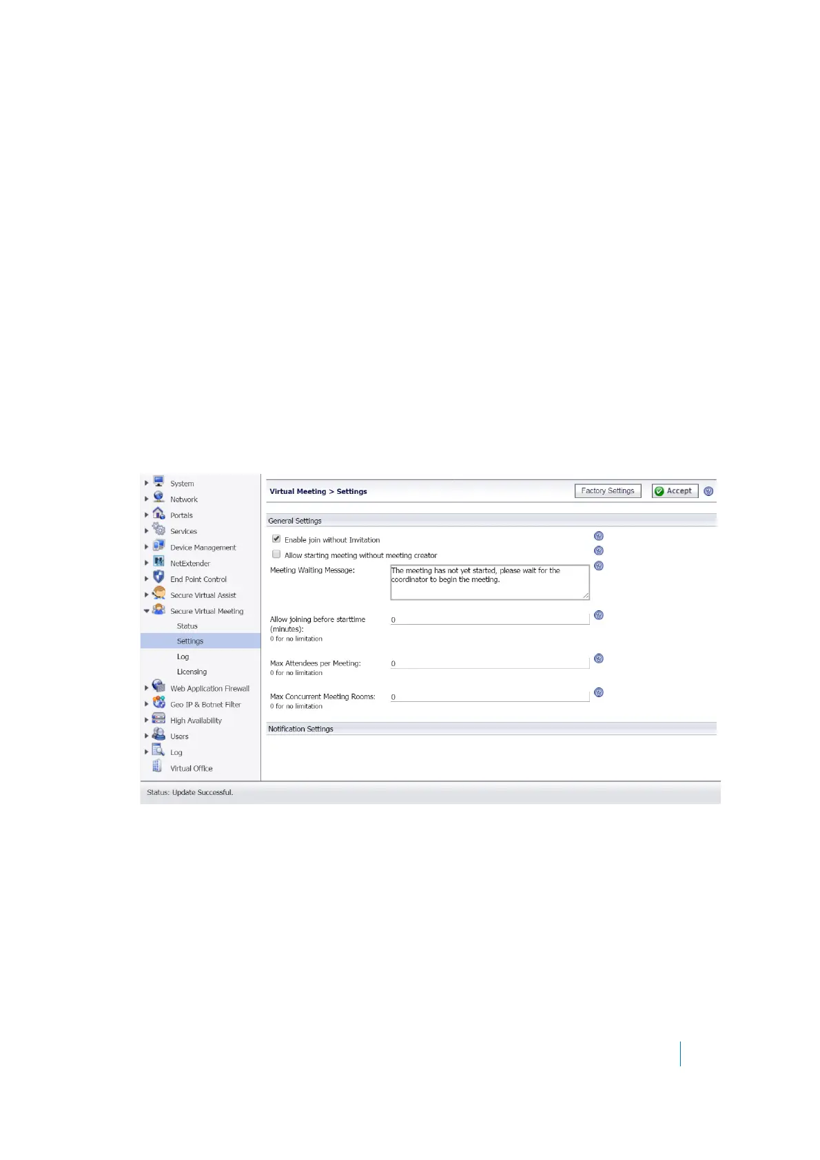 1 Navigate to the Secure Virtual Meeting > Settings page.