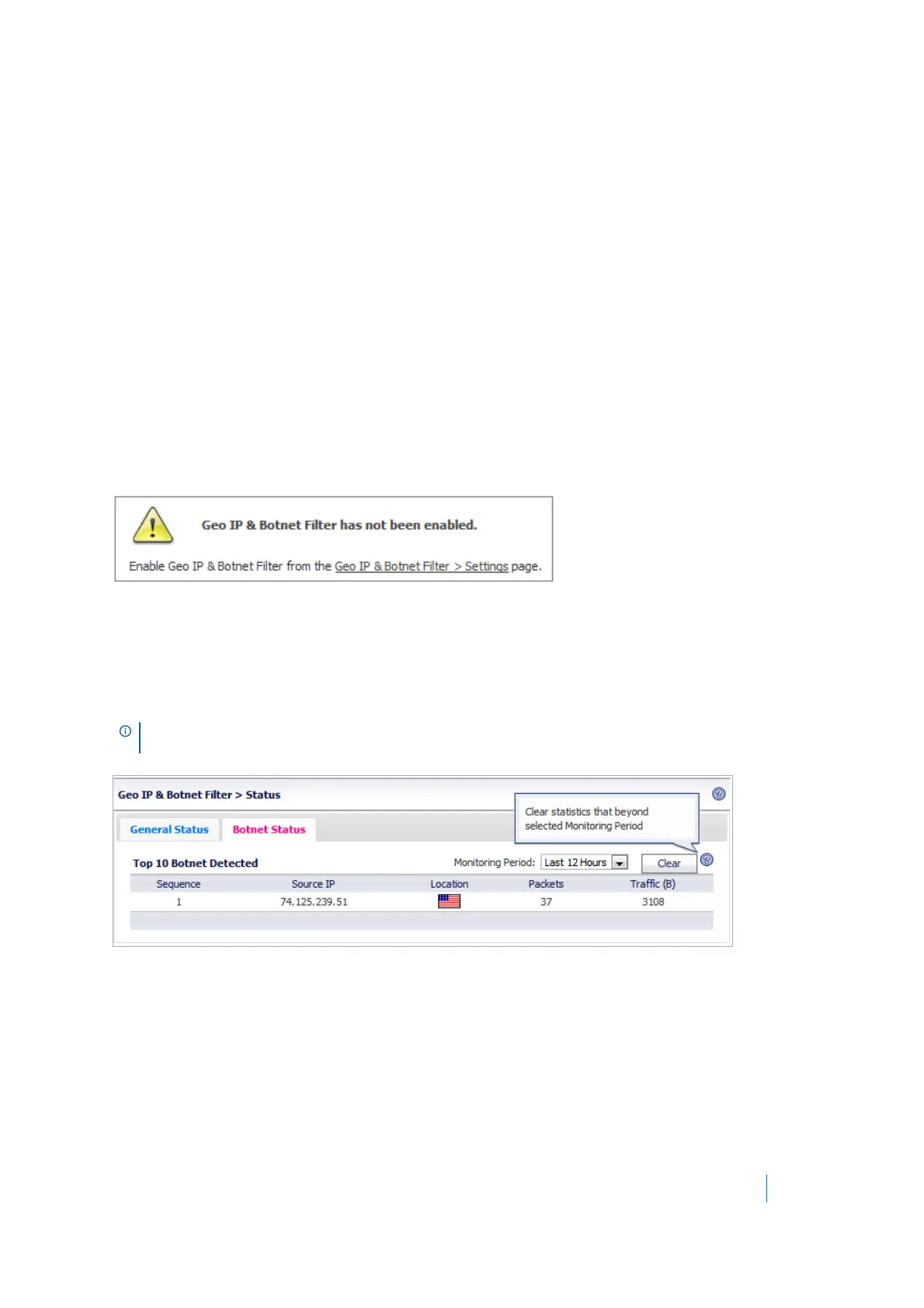 synchronize the database. When the Geo IP & Botnet Filter is enabled, the General Status tab provides the