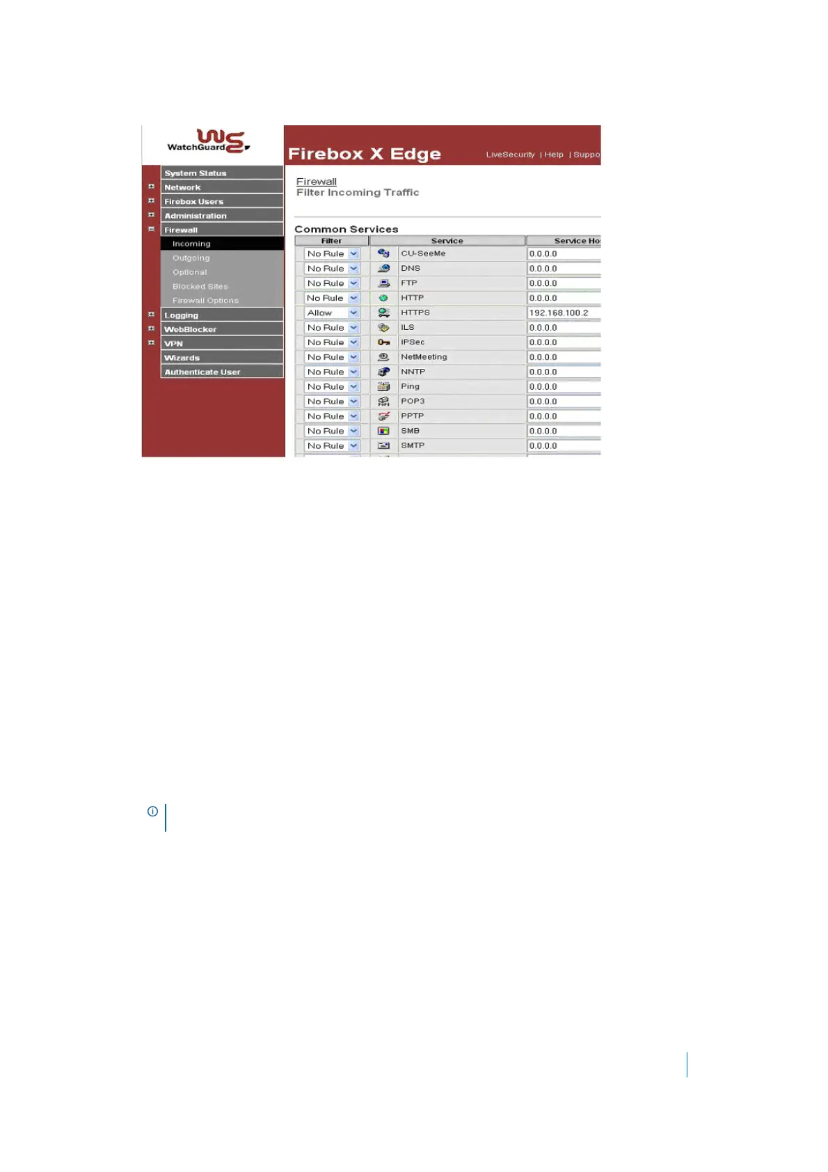 7For the HTTPS Service, set Filter to Allow and enter the WAN IP of the SMA/SRA appliance