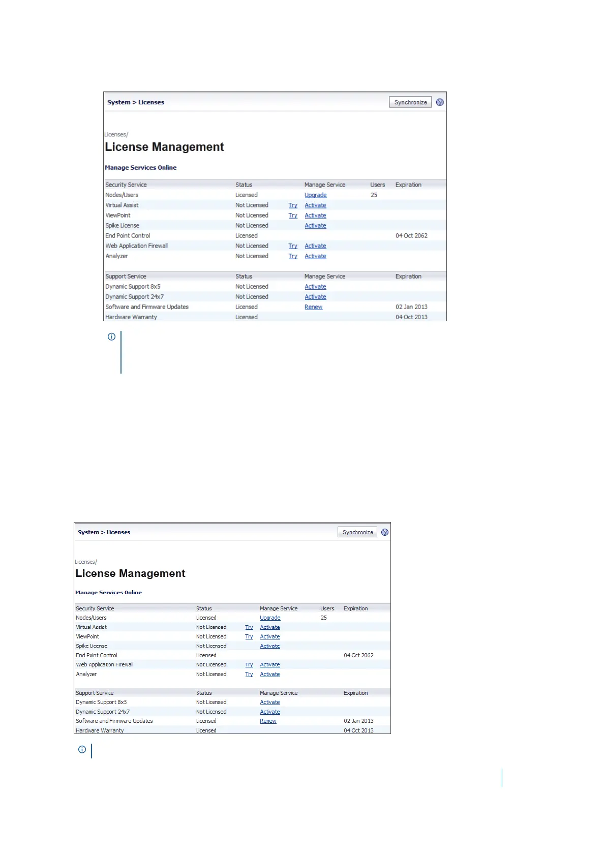 NOTE: Services displayed on the System > Licenses page vary, depending on the appliance.