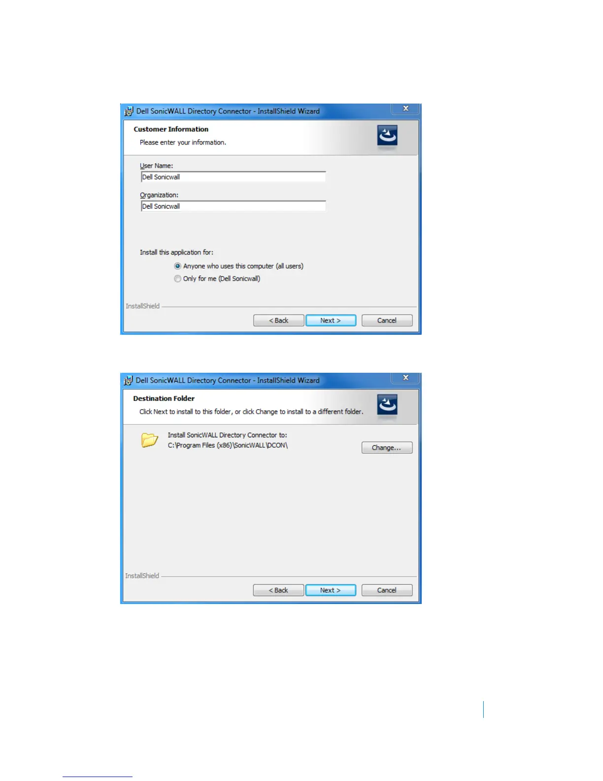 7 Select the destination folder. To use the default folder, C:\Program Files\SonicWALL\DCON, click Next. To
