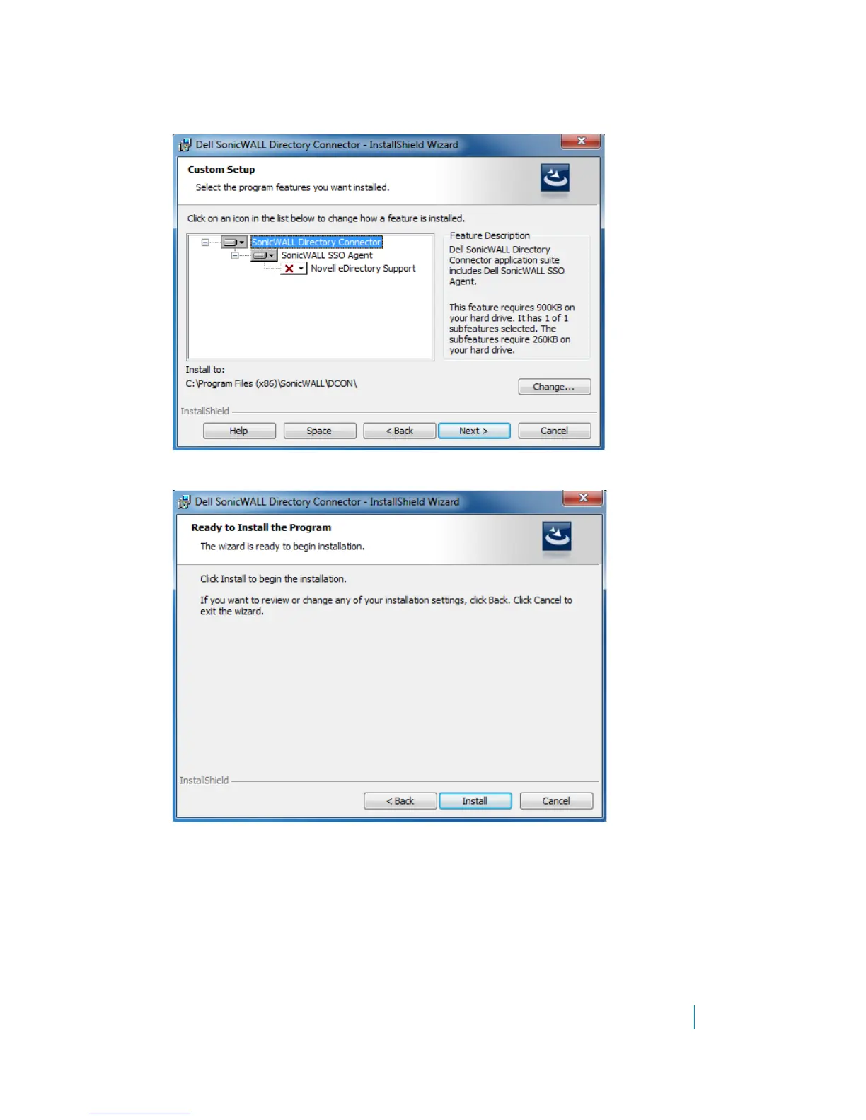 8 On the Custom Setup page, the installation icon is displayed by default next to the SonicWALL SSO Agent