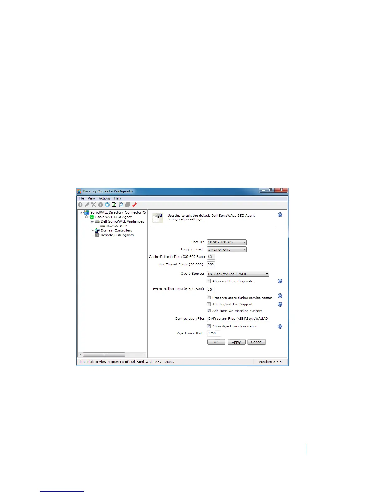 1 In the Directory Connector Configuration Tool, right-click SonicWALL SSO Agent in the left panel.