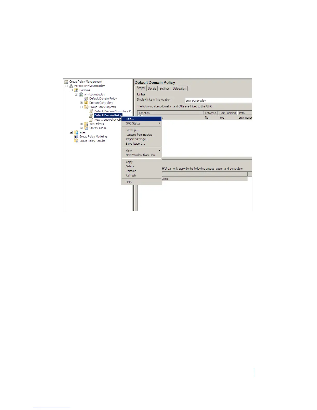 Refer to the following screen to edit the Default Domain Policy.