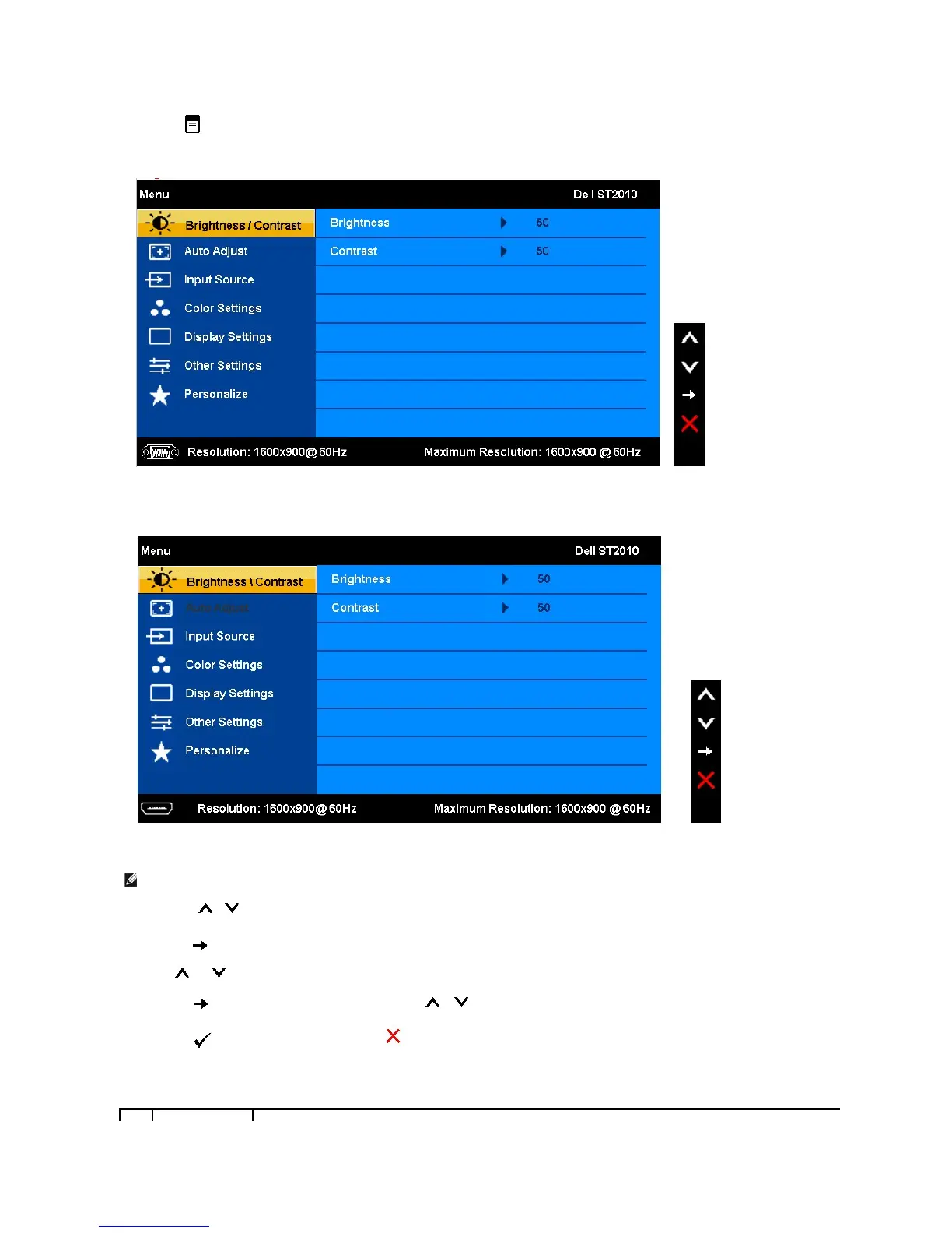 5. Press the button to enter the slide bar and then use the or button, according to the indicators on the menu, to make your changes.