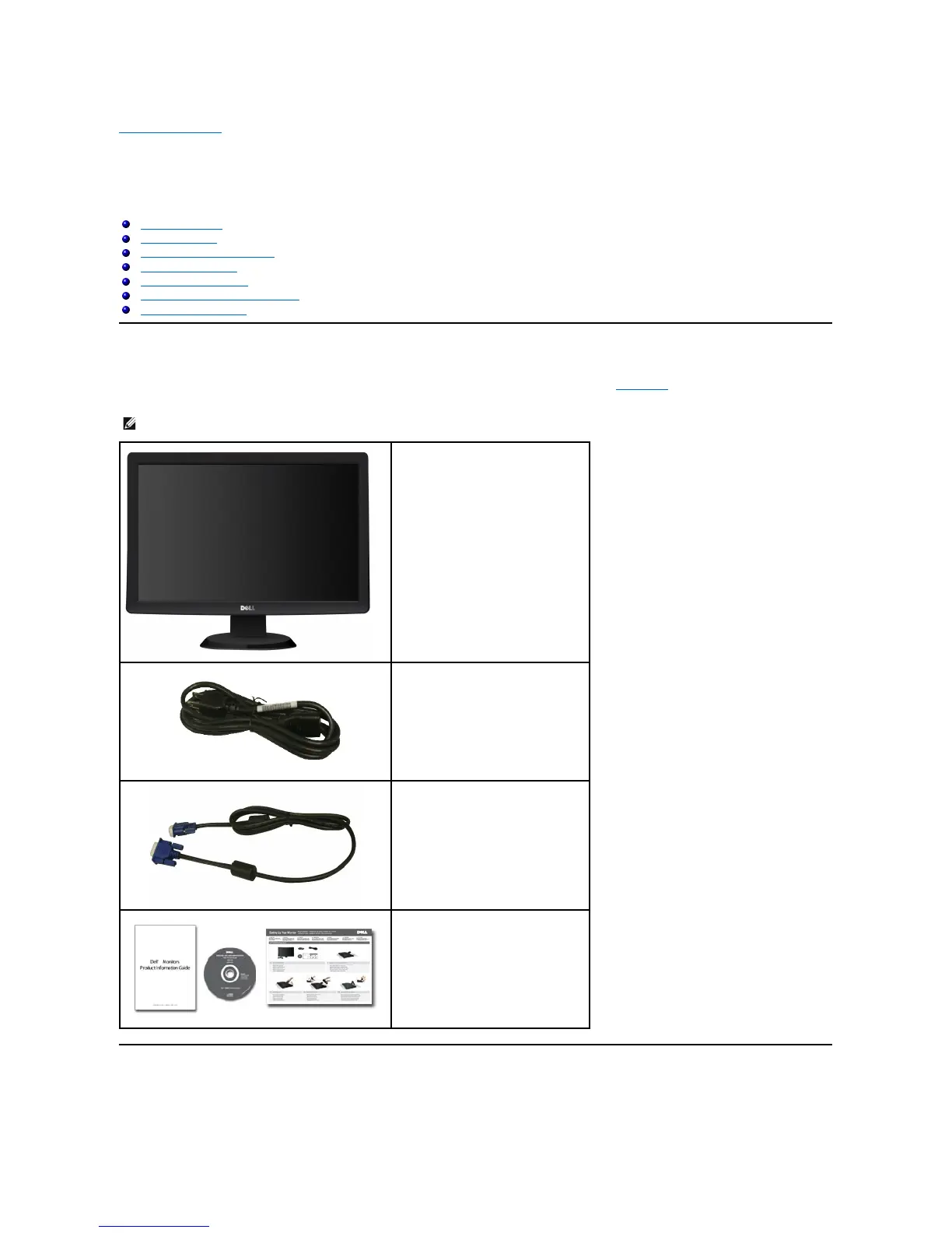 Your monitor ships with the components shown below. Ensure that you have received all the components and contact Dell if something is missing.