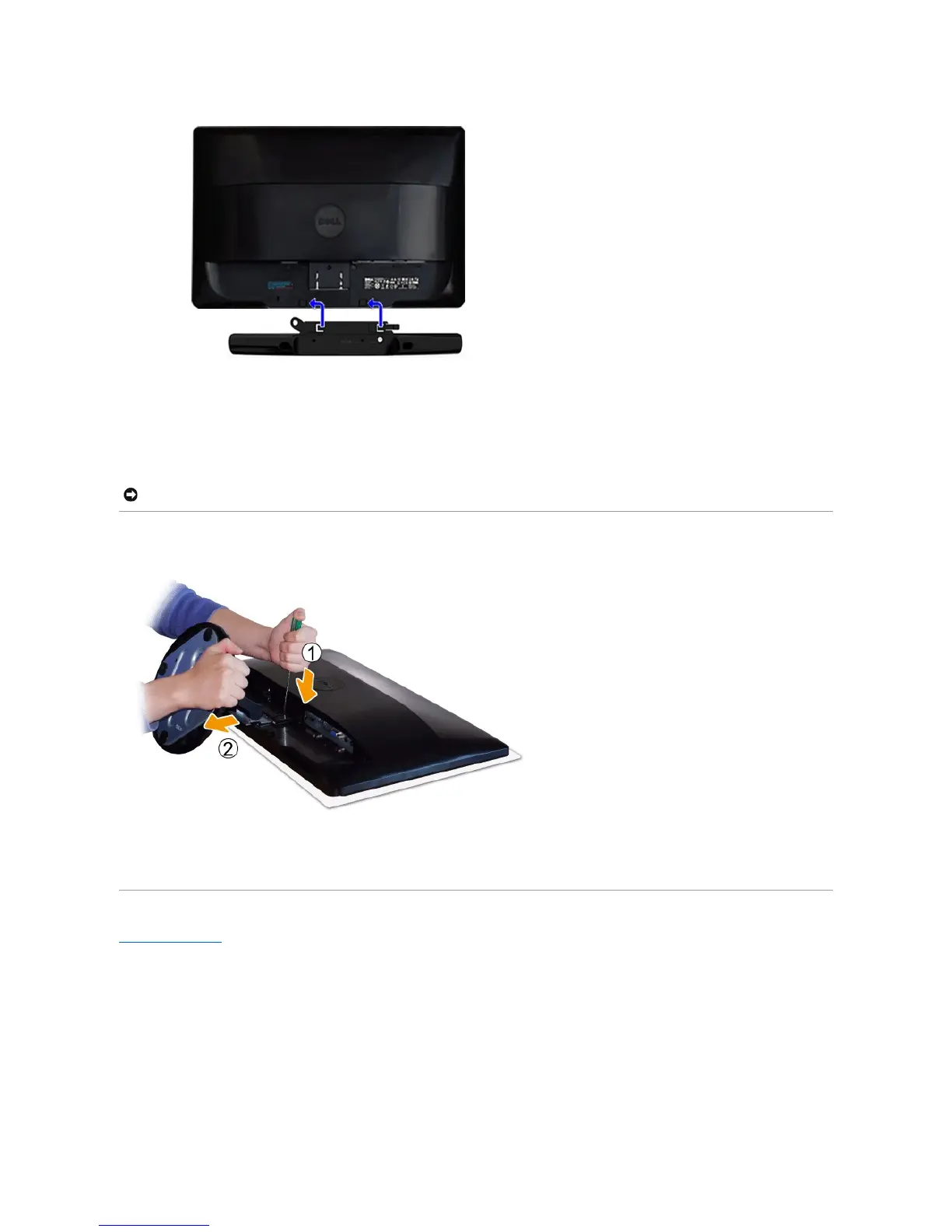 1. Use a long screwdriver to push the release latch located in a hole just above the stand.