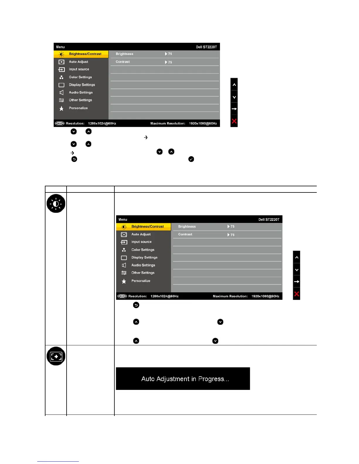 NOTE: Auto Adjust does not occur if you press the button while there are no active video input signals or attached cables.