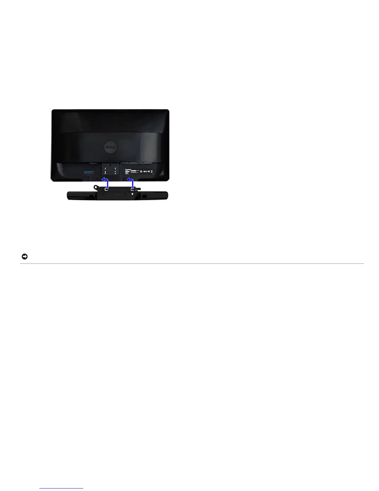 1. Working from the rear of the monitor, attach the Soundbar by aligning the two slots with the two tabs along the bottom rear of the monitor.