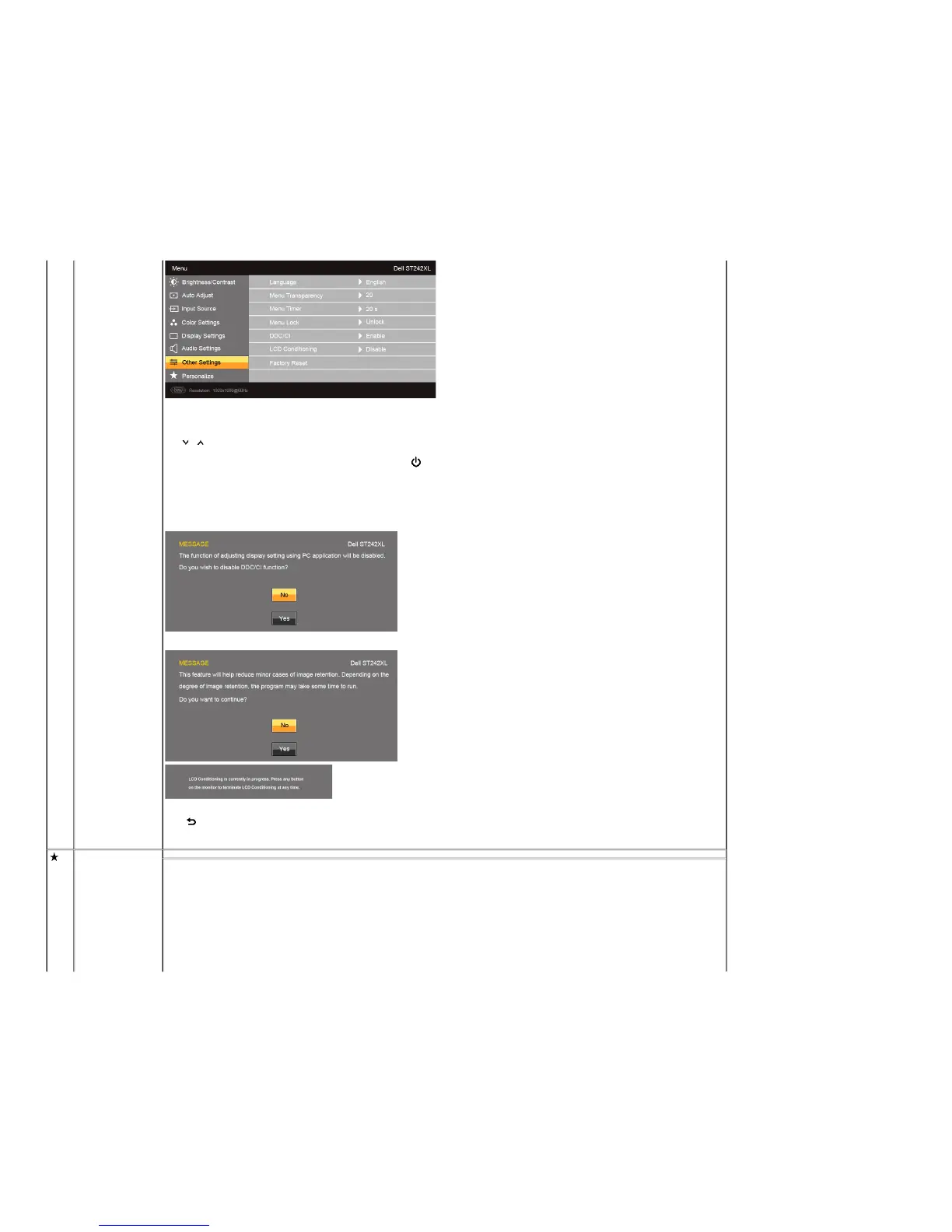 If an image appears to be retained on the monitor, select LCD Conditioning to help eliminate any image retention. Using the LCD Conditioning feature may take several hours. Severe cases of image retention are known as burn-in, the LCD Conditioning feature does not