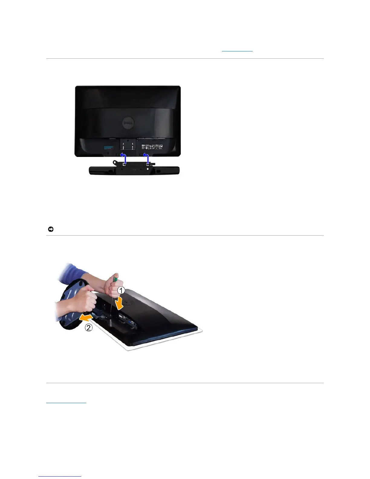 1. Use a long screwdriver to push the release latch located in a hole just above the stand.