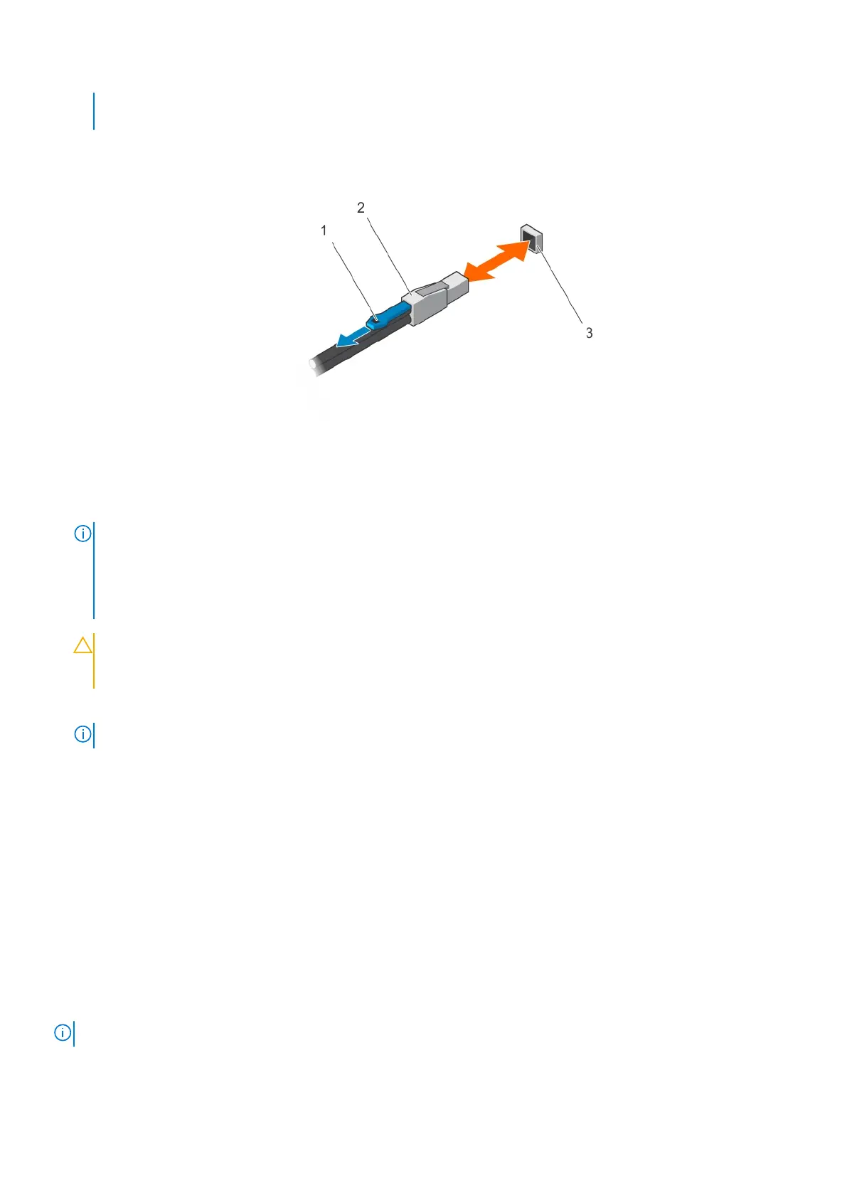 ● To remove the SAS cable, pull the pull-tab to release the cable from the connector on the EMM and the host