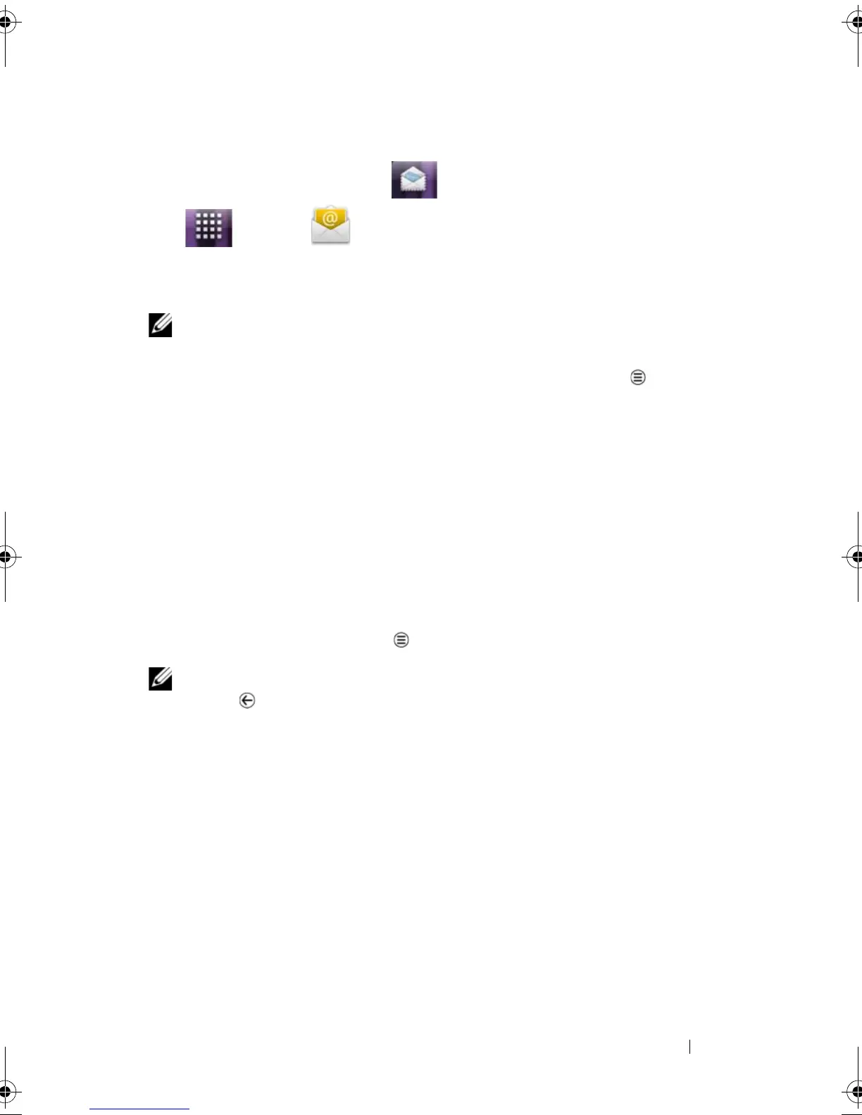 1 On the e-mail account inbox, touch and hold the e-mail you want