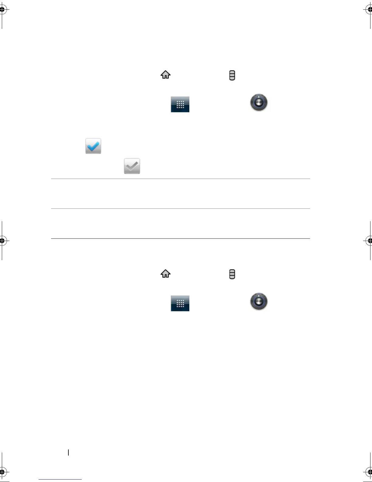 box ; to disable a setting, touch the setting option to clear