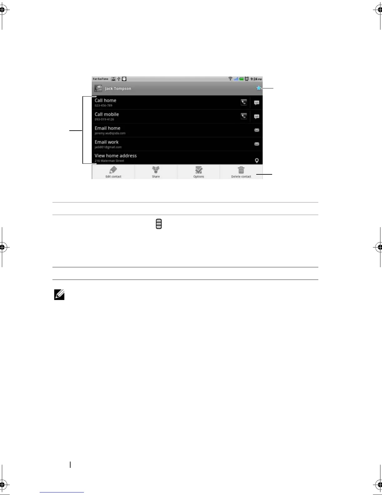 contact info with your friends through e-mail or Bluetooth. To designate